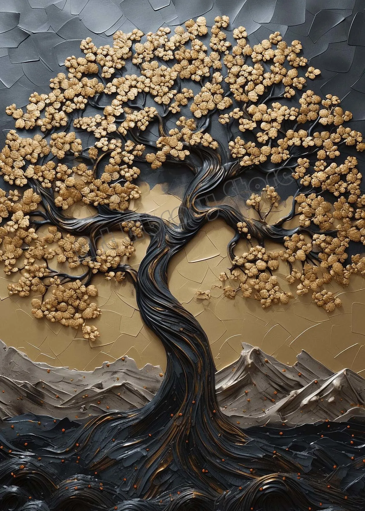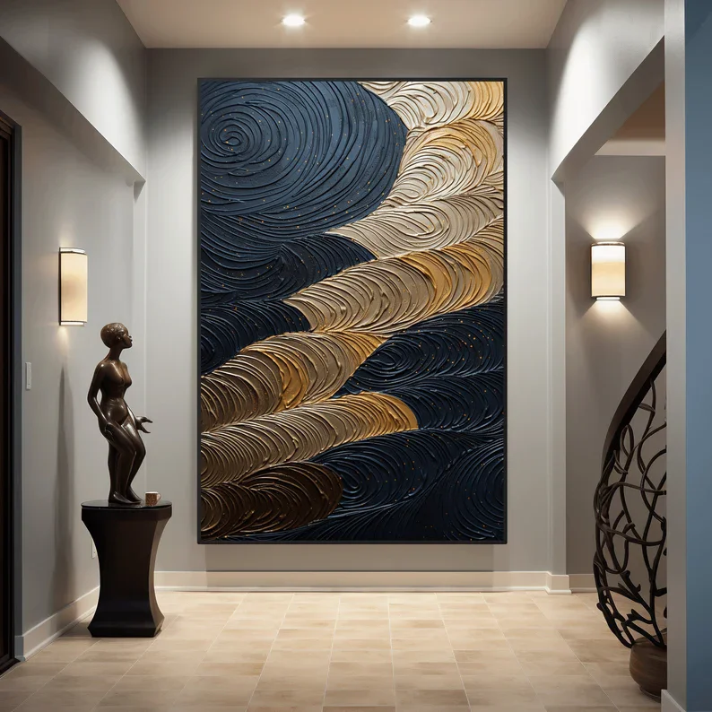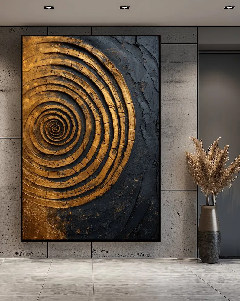 Elevate your space with the Abstract Gold Tree Canvas. Featuring a striking spiral design with black and gold leaves and wave patterns, this wall art adds a touch of luxury to any room. Printed on high-quality canvas, it’s perfect for home interior décor or as a thoughtful gift for art lovers.