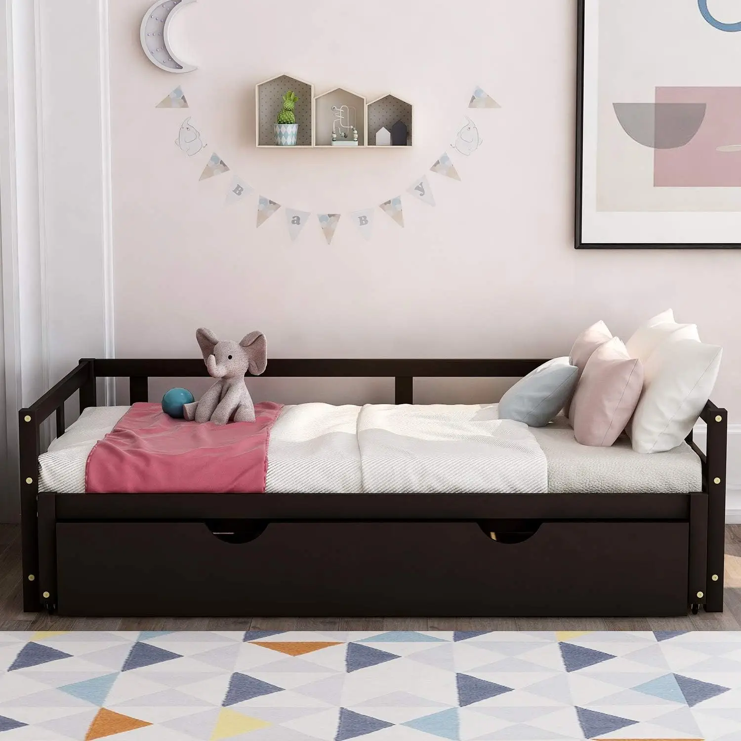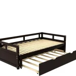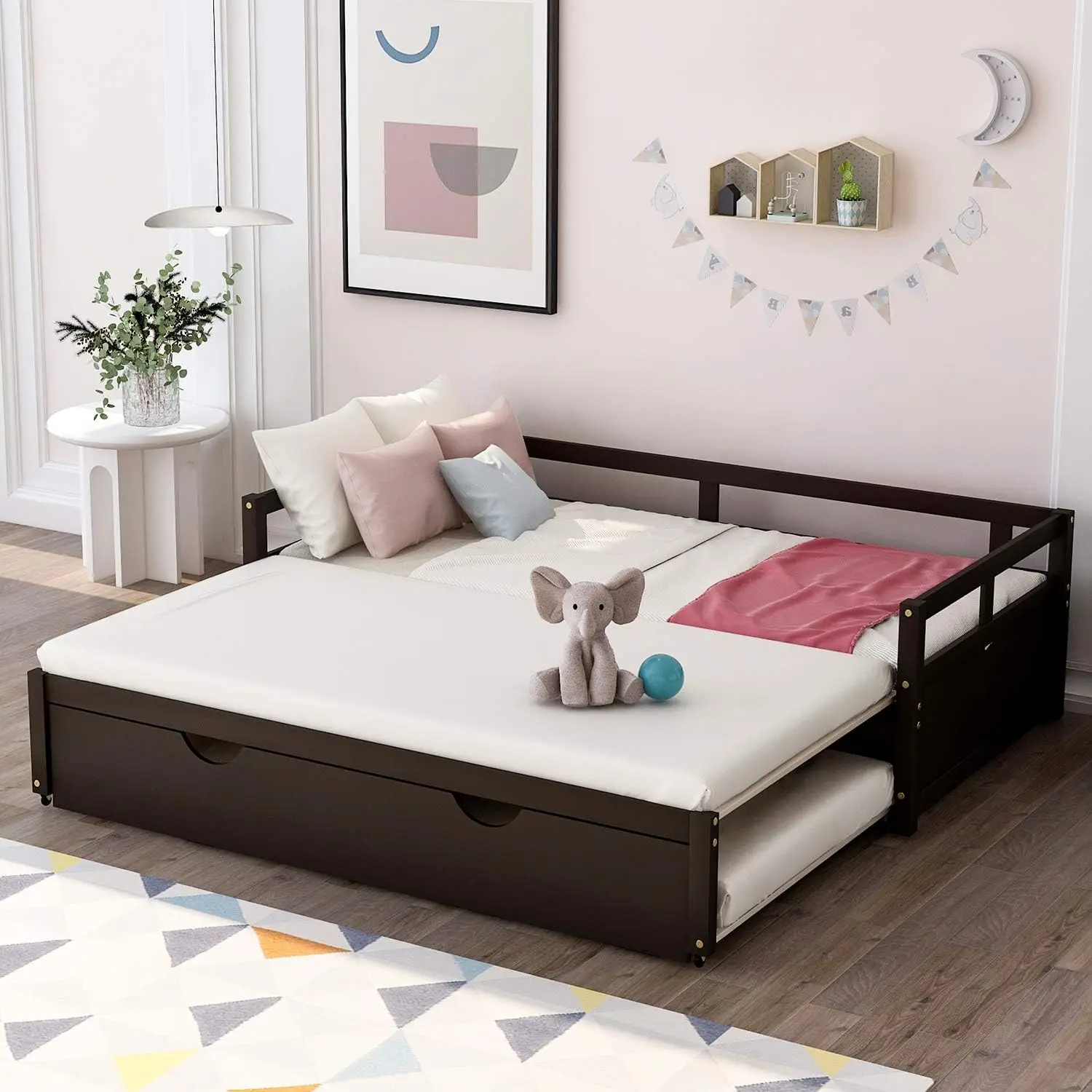 Maximize space and style with the Extending Daybed with Trundle. Designed to expand from a twin to a king, this versatile sofa bed is perfect for the living room or bedroom. Crafted in a rich espresso finish, it offers comfort, functionality, and timeless elegance for any home.
