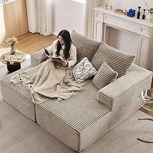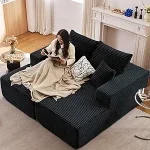 Relax in style with the Oversized Chaise Lounge Sofa. Upholstered in soft corduroy, this versatile piece functions as both a recliner and sleeper sofa. Complete with armrests and plush throw pillows, it’s perfect for lounging, reading, or napping in ultimate comfort.