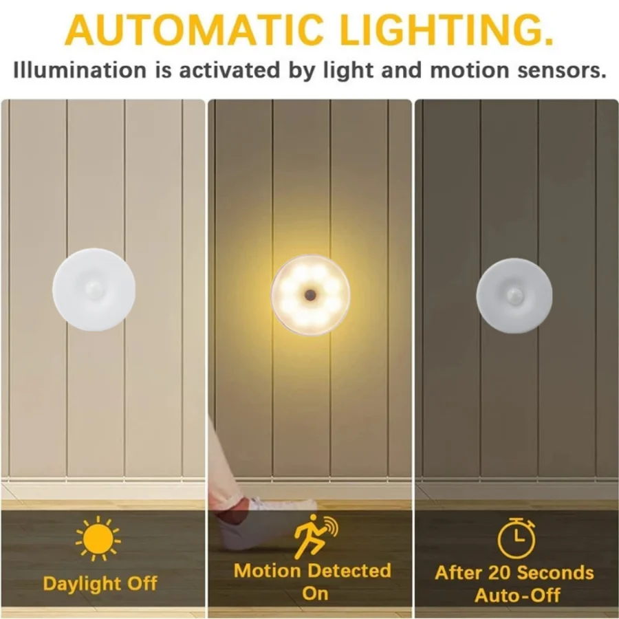 Illuminate your space effortlessly with the Rechargeable Motion Sensor Light. USB-powered and easy to install, it provides bright, energy-efficient lighting for bedrooms, staircases, hallways, wardrobes, or cupboards. Its motion-activated design ensures light only when needed, making it convenient and battery-saving.