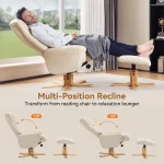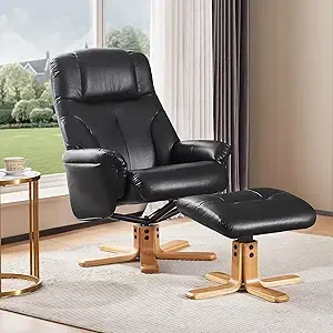 Unwind in comfort with the Swivel Recliner Chair & Ottoman. Upholstered in stylish faux leather, this chair offers a smooth 360° swivel and adjustable reclining positions for personalized relaxation. Perfect for living rooms or reading nooks, it combines elegance, comfort, and functionality in one.