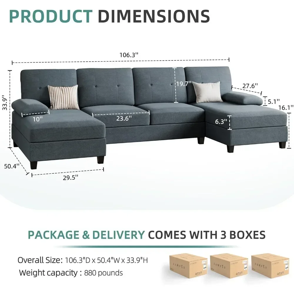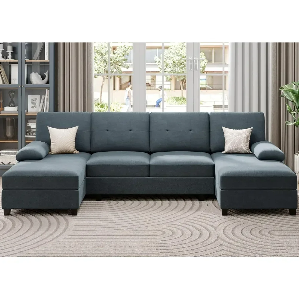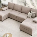 Create the perfect lounging space with the U-Shaped Sectional Sofa. Designed with four seats and double chaises, it offers ample room for relaxation and gatherings. Stylish and comfortable, this living room centerpiece combines modern design with practical seating for family and guests.